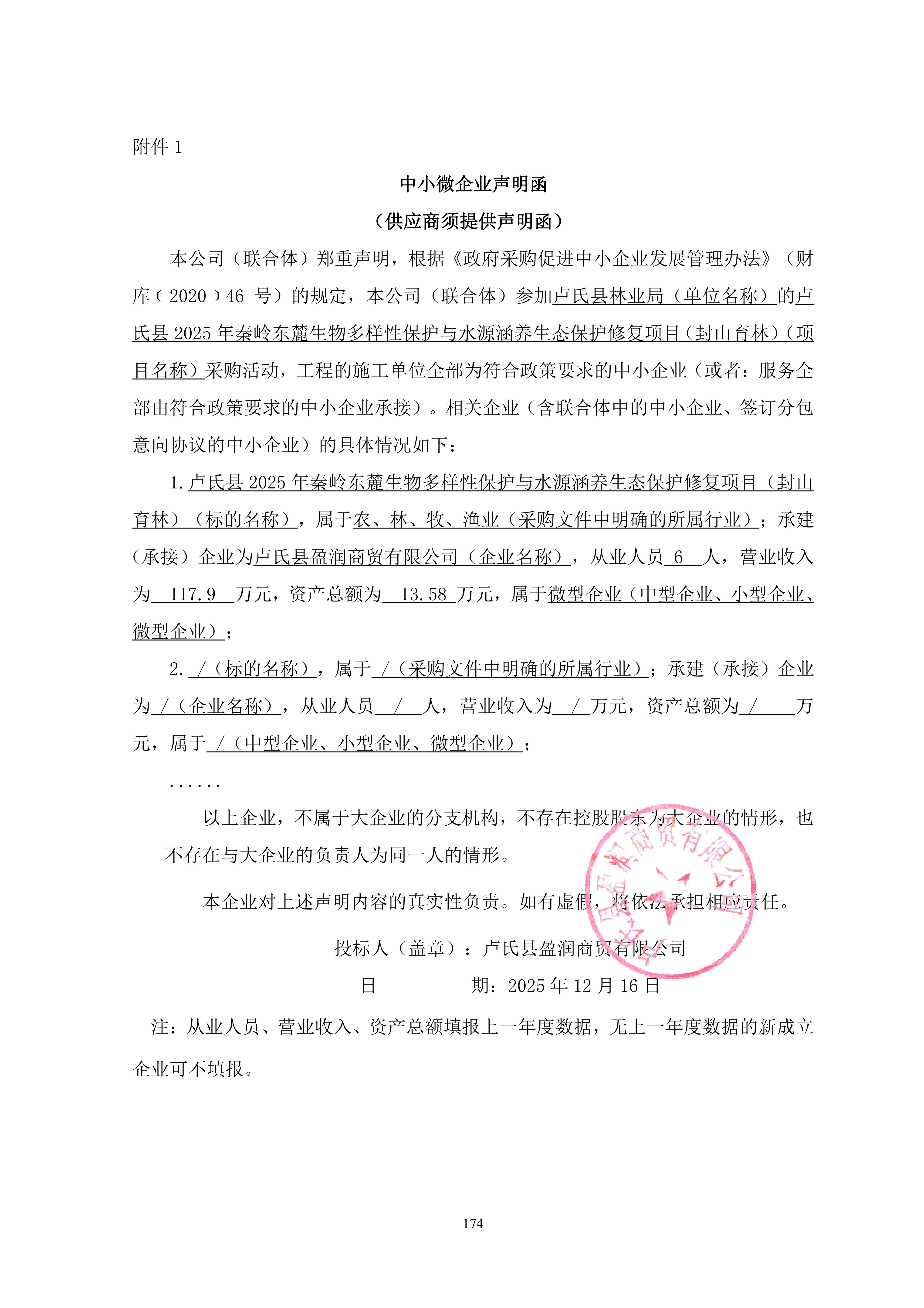 卢氏县2025年秦岭东麓生物多样性保护与水源涵养生态保护修复项目(封山育林)-中标公告