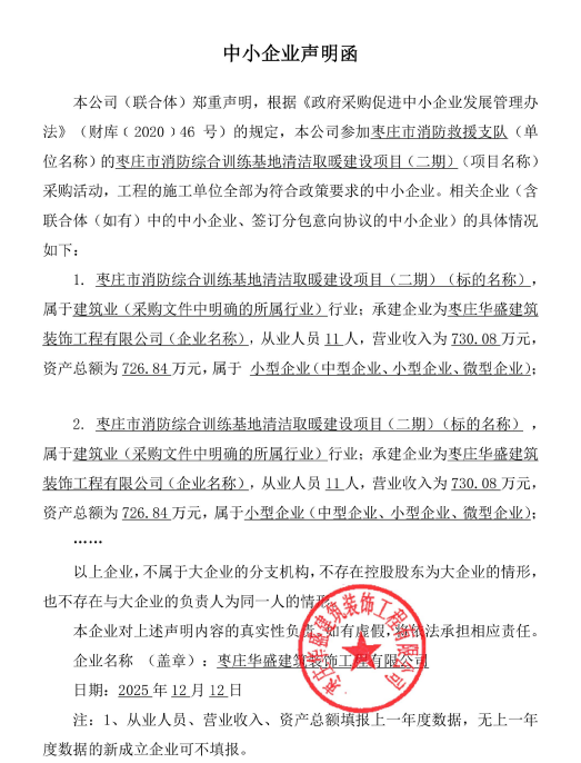 枣庄市消防综合训练基地清洁取暖建设项目(二期)中标公告-成交公示
